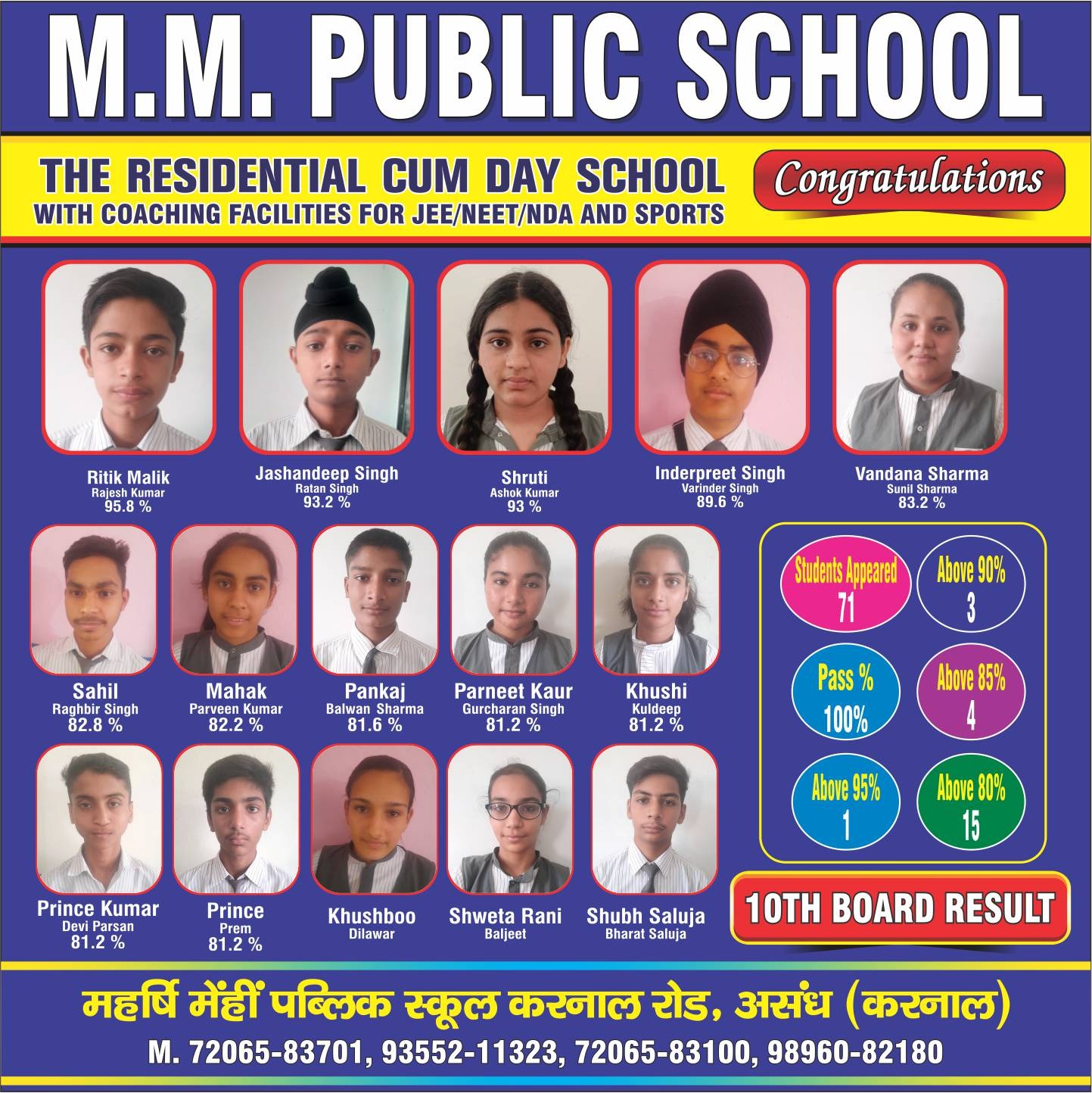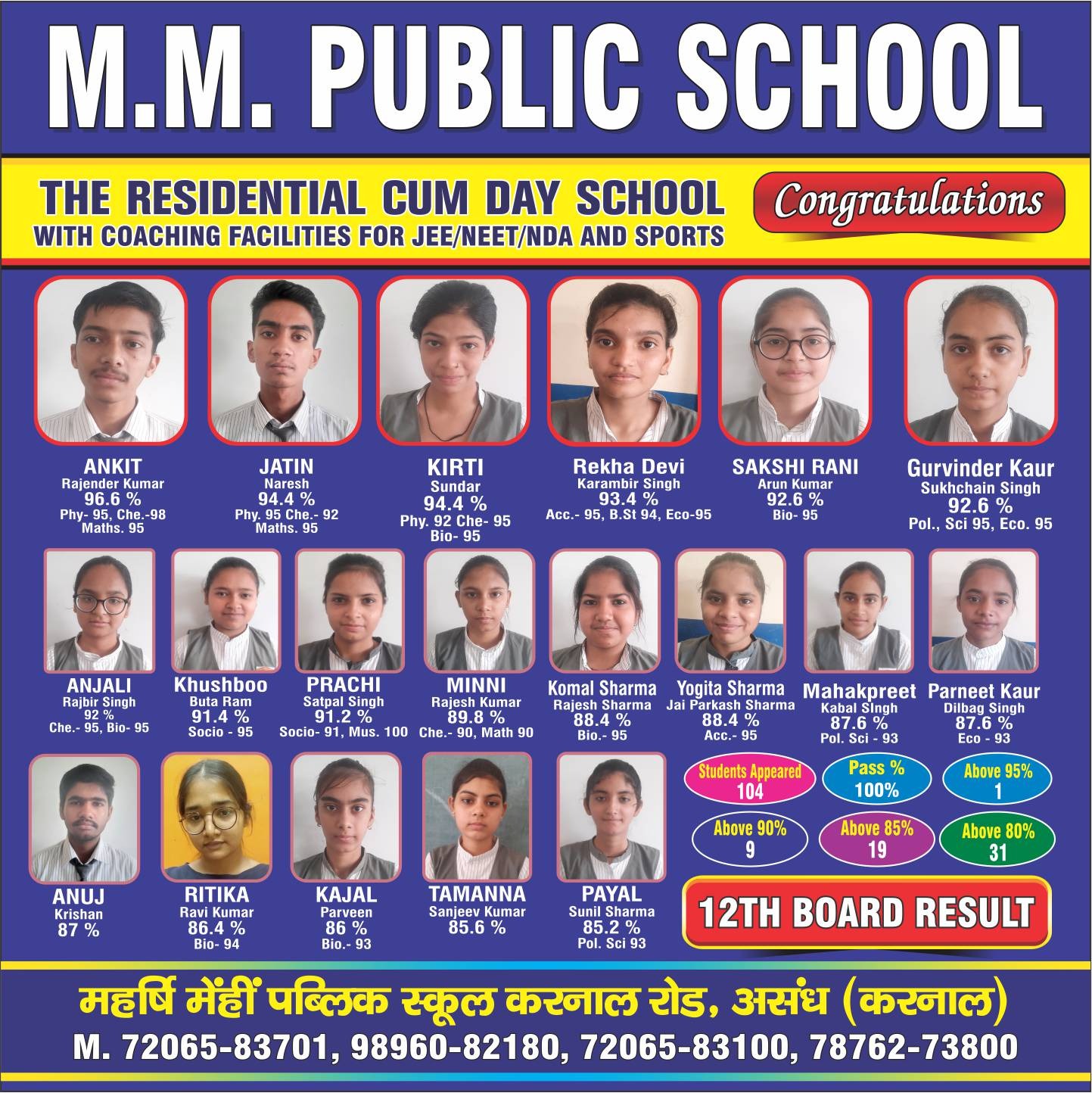 MAHARISHI MEINHIEN PUBLIC SCHOOL, ASSANDH Haryana, With the kind blessing of Swami Vyasanand Ji Maharaj, Maharishi Meinhien Gyan Vatika, Dehradun, a present day spiritual torch bearer, this school was established by Sh.Kishan Chand Bhardwaj in the year 2000 as per wishes of Maharishi Meinhien Ji Maharaj. The school is owned and managed by Shiva Education Society (Regd.) Assandh and has been co-founded by people keenly and genuinely interested in the eradication of illiteracy, upliftment and empowerment of people through education.